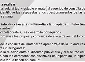 Se estudiaron las lecturas propuestas para esta semana , logrando identificar las diferentes leyes que protegen los derechos de autor y la propiedad intelectual, como tambien el estudio de las caracteristicas o criterios que se deben tener en cuenta cuando se evalua una pagina web,de igual manera las diferencias entre hipertexto, hipermedia y multimedia.